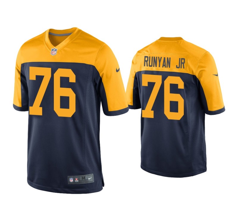Men Green Bay Packers #76 Jon Runyan Jr. Navy Throwback Game Jersey