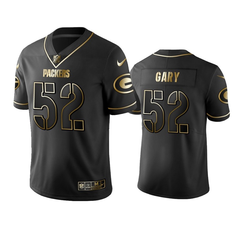 Every fan has various pieces of fan apparel that are a little different from the standard clothing that makes up most of their wardrobe or collection, and this Men Green Bay Packers #52 2019 Golden Edition Vapor Limited Packers Rashan Gary Black Jersey will definitely stand out from the others. The Gold Vapor Untouchable Limited jersey design includes a golden team graphics screen-printed on the front and on both sleeves, the golden player's name and number on the the front and back.