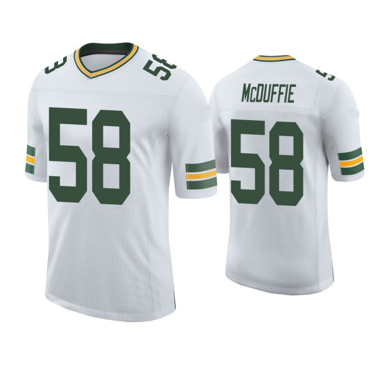 Rock the look of your favorite squad when you wear the Men Green Bay Packers #58 Isaiah McDuffie Vapor Limited White Jersey. It features a comfortable polyester design with quality Green Bay Packers and Isaiah McDuffie embroidered graphics that will quickly make this Isaiah McDuffie Jersey one of your favorites.