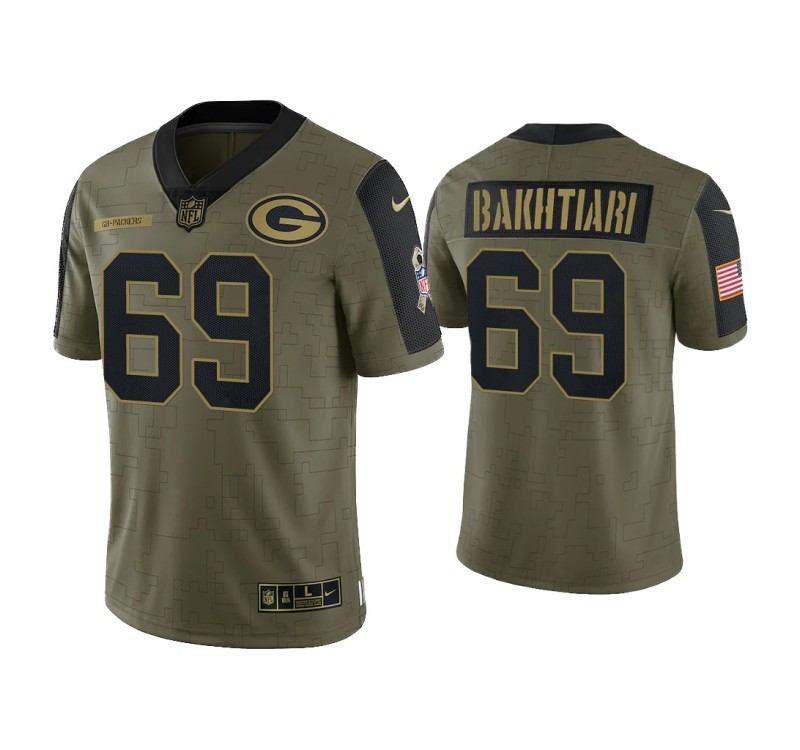 Men Green Bay Packers #69 David Bakhtiari Olive 2021 Salute To Service Limited Jersey